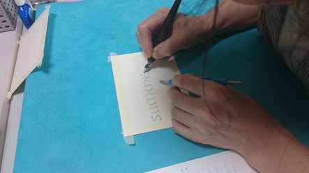 マスケットという特殊な液でカード用紙に書きます